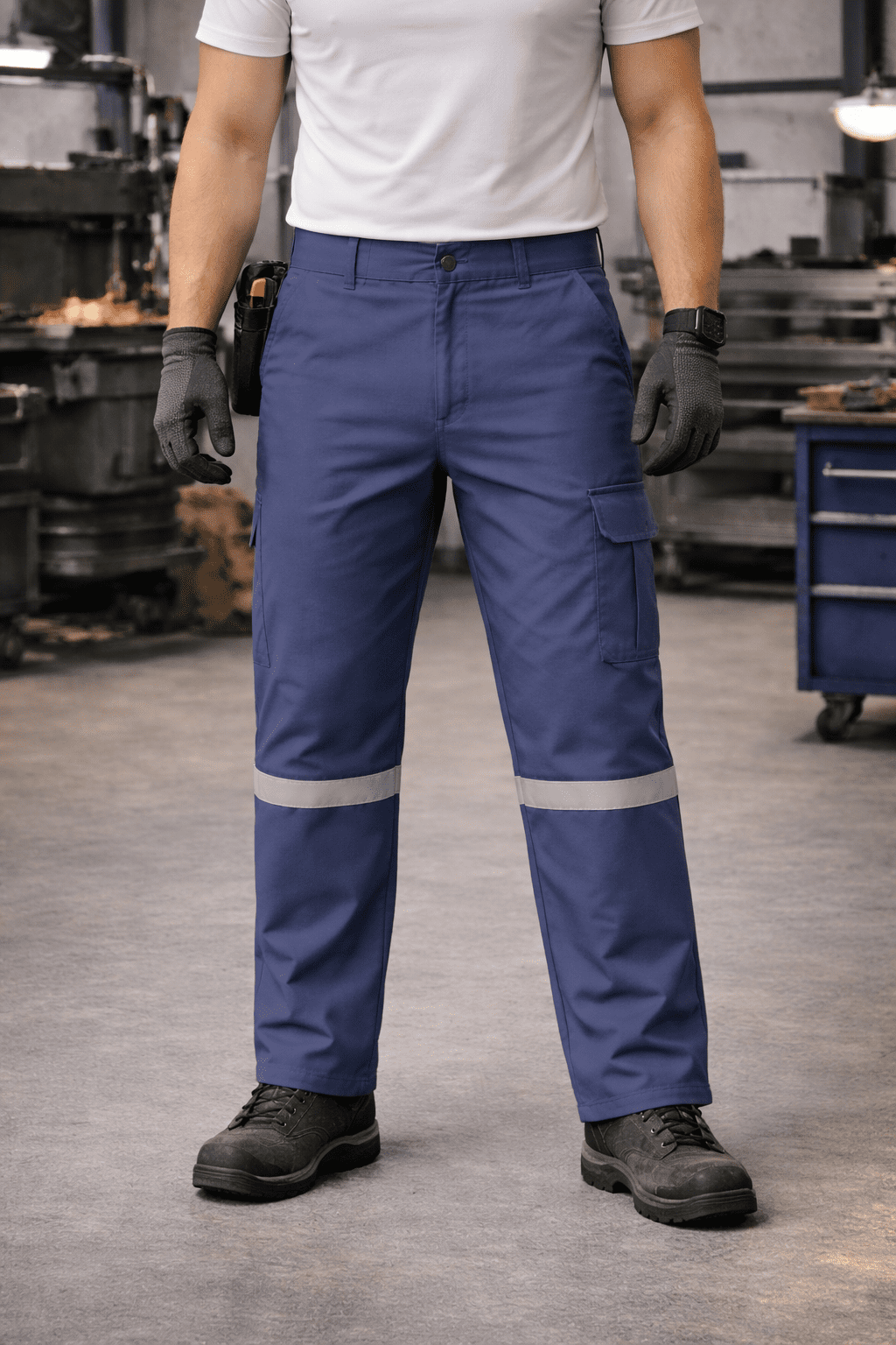 Yüksek görünürlüklü reflektör şeritleri, fonksiyonel kargo cepleri ve dayanıklı kumaş yapısıyla öne çıkan iş pantolonu, iş güvenliği standartlarına tam uyum sağlar. Kurumsal toptan sipariş ve logo uygulaması için hemen iletişime geçin.