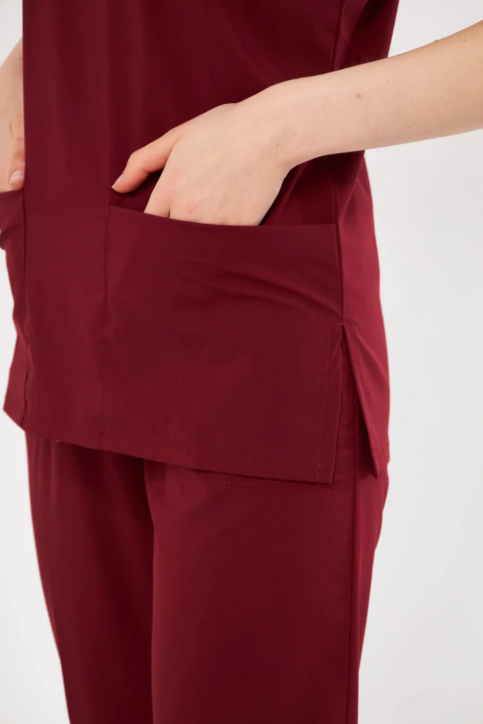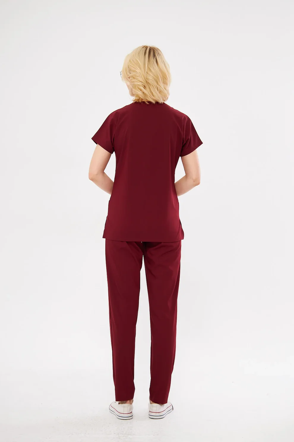 Bordo Kadın Konfor Üniforma Seti, profesyonel görünümünden ödün vermeden gün boyu rahatlık arayan kadınlar için ideal bir tercihtir.