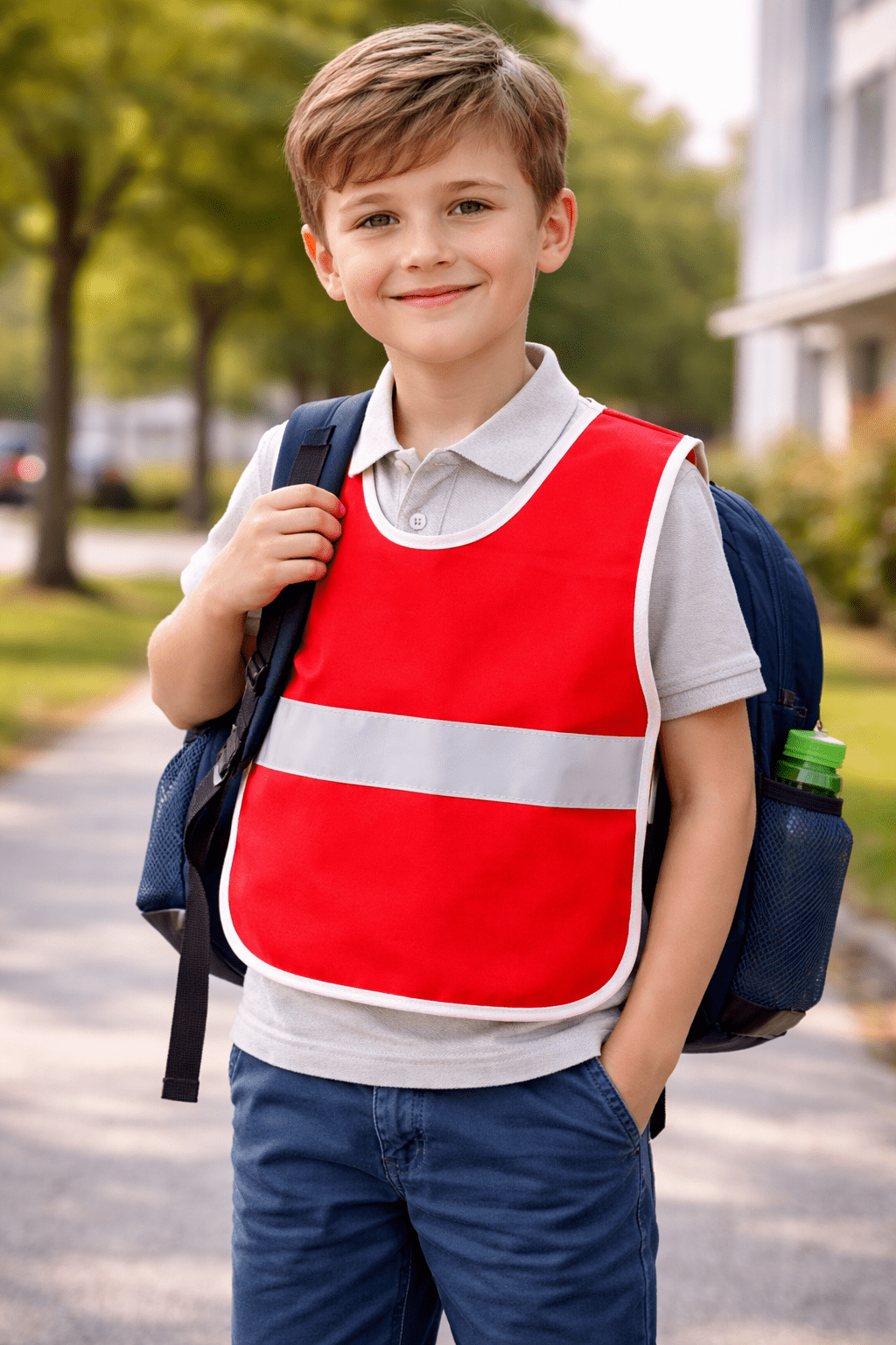 Çocuk Reflektörlü Güvenlik Yeleği – Kırmızı Yüksek Görünürlüklü Model