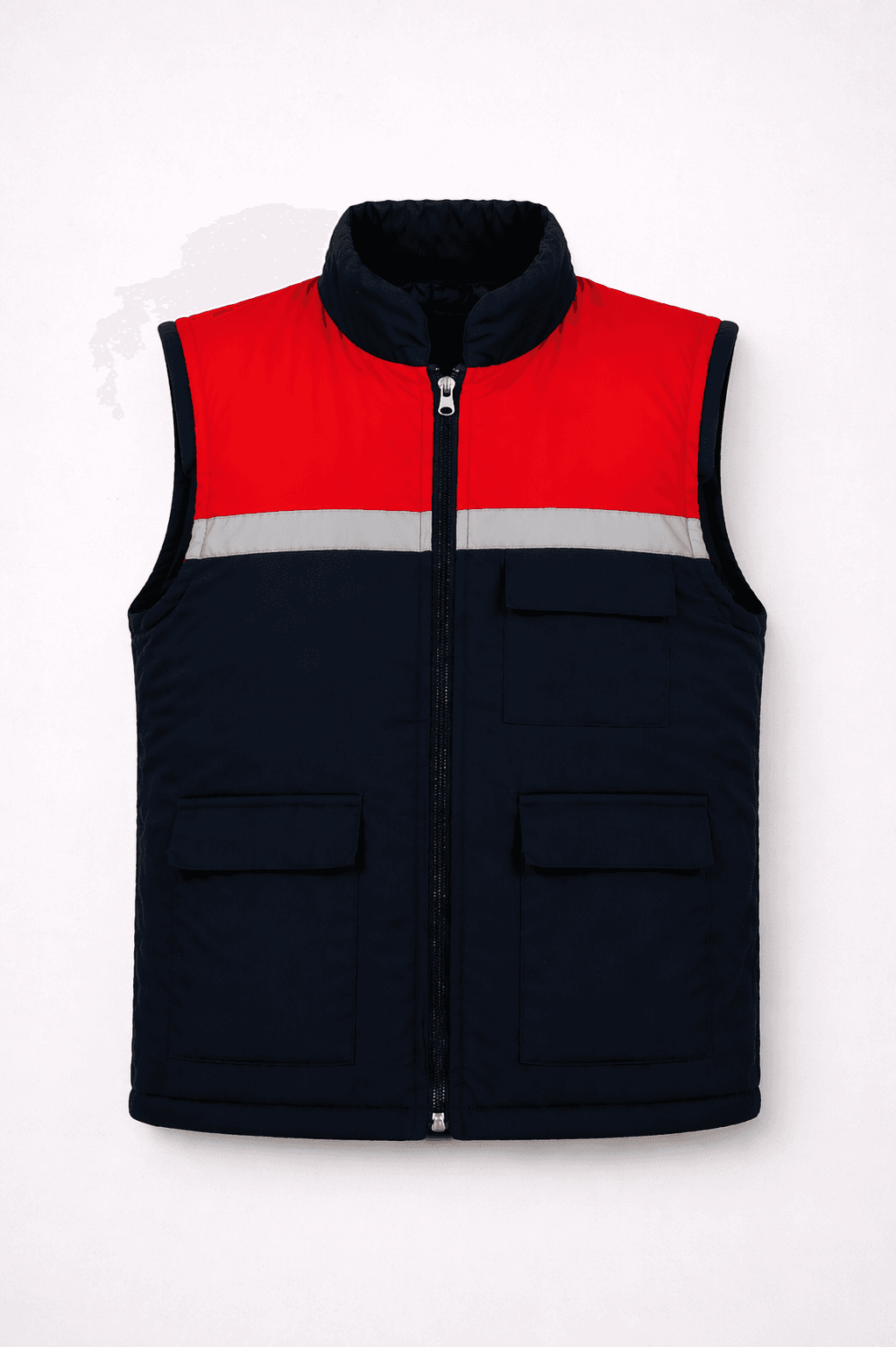 Reflektörlü kırmızı lacivert iş güvenliği yeleği, saha çalışanları için hem güvenlik hem de konfor sunar. Dayanıklı kumaş yapısı ve çok cepli tasarımı sayesinde günlük kullanımda maksimum verim sağlar. Reflektör şeritleri ile düşük ışıkta görünürlüğü artırır. Toptan alıma uygun fiyat avantajı ile işletmeler, inşaat firmaları ve sanayi kuruluşları için ideal bir çözümdür.