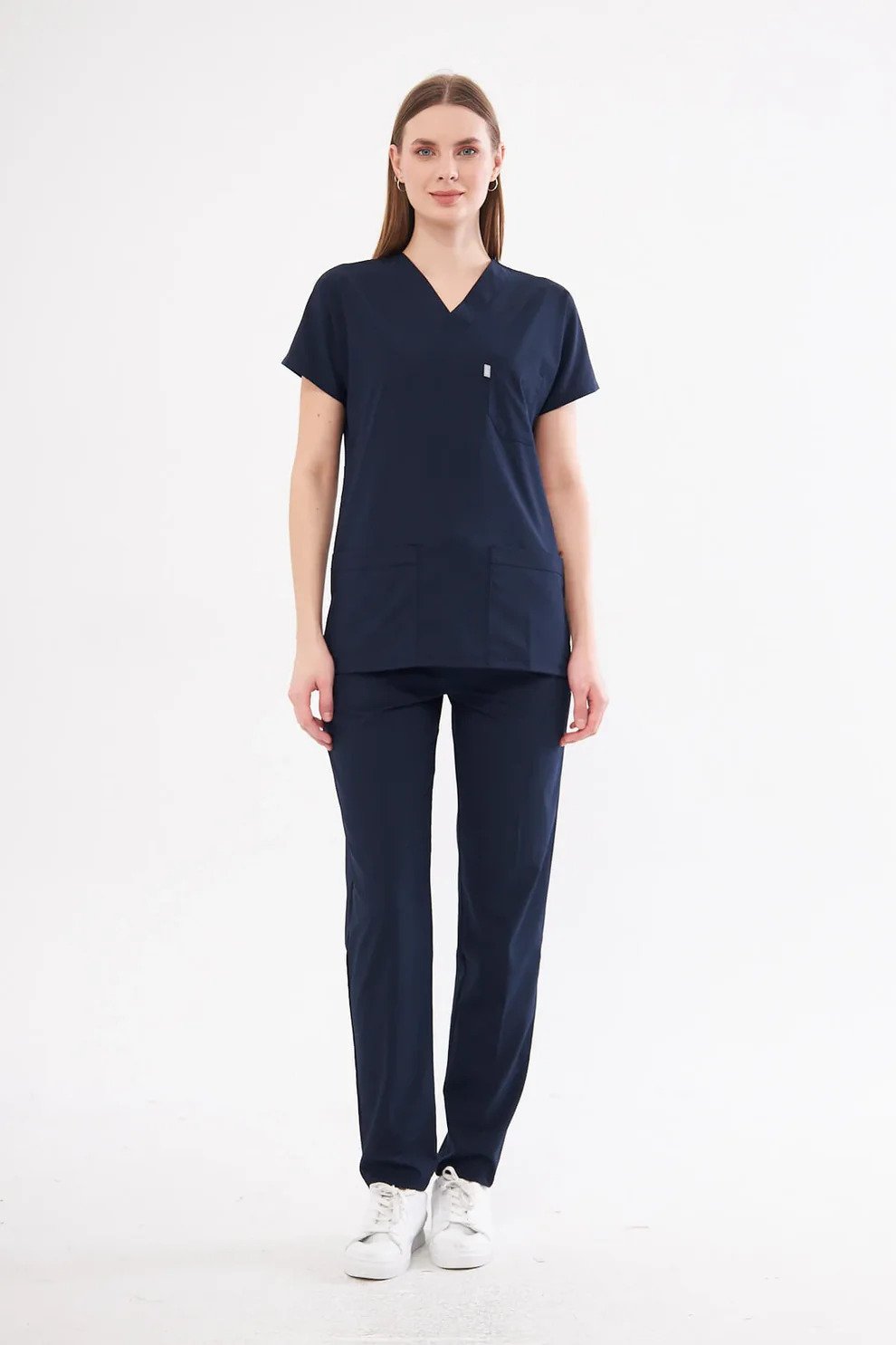 Lacivert Kadın Konfor Üniforma Seti, profesyonel görünümünden ödün vermeden gün boyu rahatlık arayan kadınlar için ideal bir tercihtir.