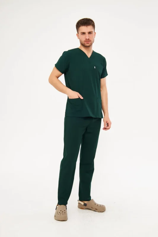 Likralı ve nefes alabilen kumaşı, vücuda uyum sağlayarak maksimum konfor oluşturur. Avcı yeşili tonu; sağlık, güzellik, klinik ve kurumsal alanlarda hem güçlü hem de sade bir stil yaratır. Kırışmaya dayanıklı yapısı sayesinde uzun süre formunu korur ve kolay bakım avantajı sunar.