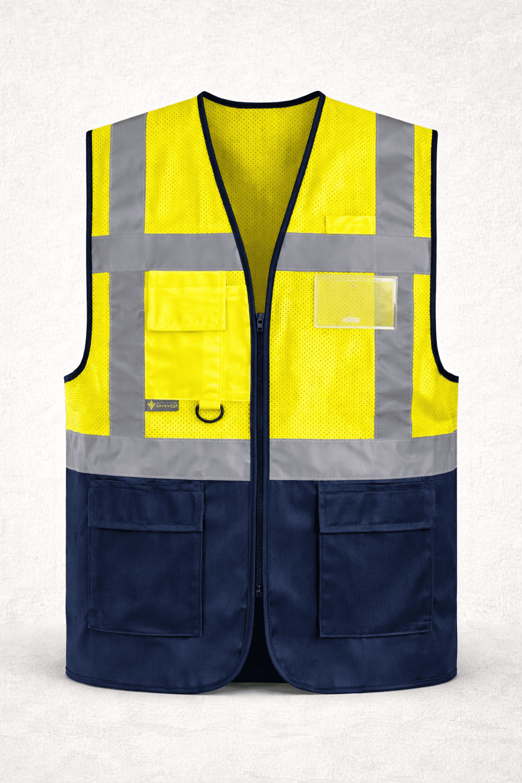 Teknik operasyonlarda ve karmaşık saha çalışmalarında personelin güvenliğini sağlayan Lacivert Sarı Güvenlik Yeleği modelleri, büyük bir kullanım kolaylığı sağlar. Çift renkli tasarımı ve yüksek kaliteli reflektörleri ekiplerinize profesyonel bir görünüm kazandırır. Bu özel tasarımı İzmir Bornova’daki tesislerimizde yüksek kalite standartlarıyla üretiyoruz. Ayrıca ProÜniforma olarak doğrudan imalatçı avantajı sağlıyoruz. Bu nedenle aracı komisyonu olmadan piyasa altı fiyatlar sunuyoruz. Sonuç olarak bu tasarım, hem personel koordinasyonunu kolaylaştırır hem de kurumsal imajınızı destekler.
