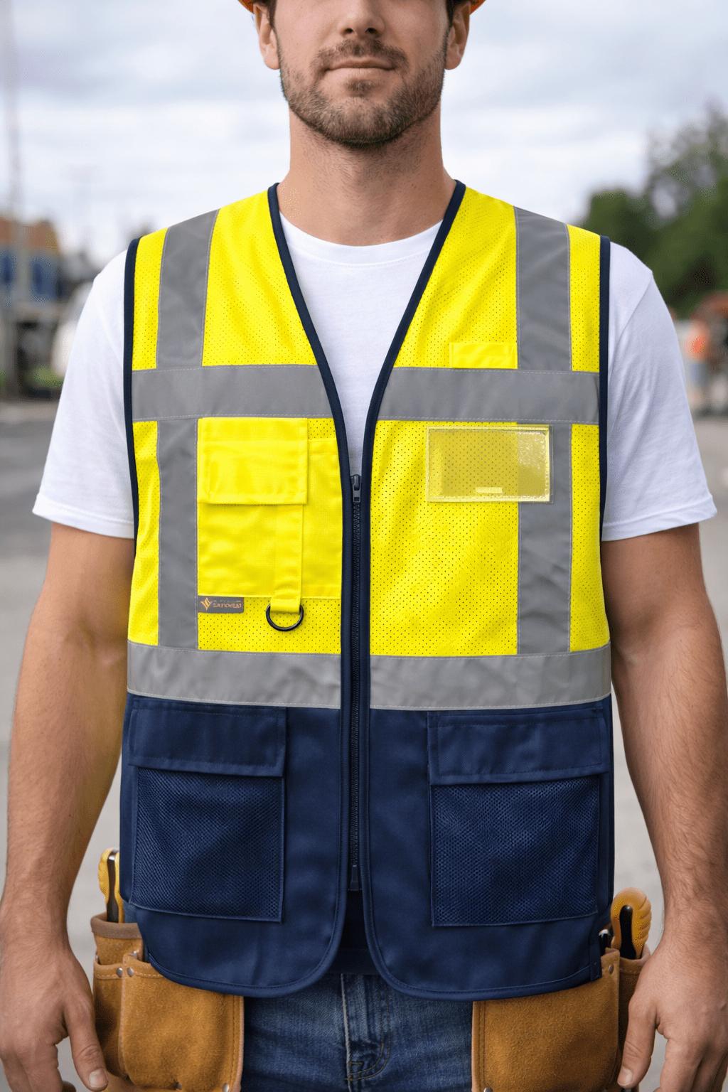 Profesyonel Çok Cepli Fileli Reflektörlü İş Güvenliği Yeleği (Lacivert-Sarı)