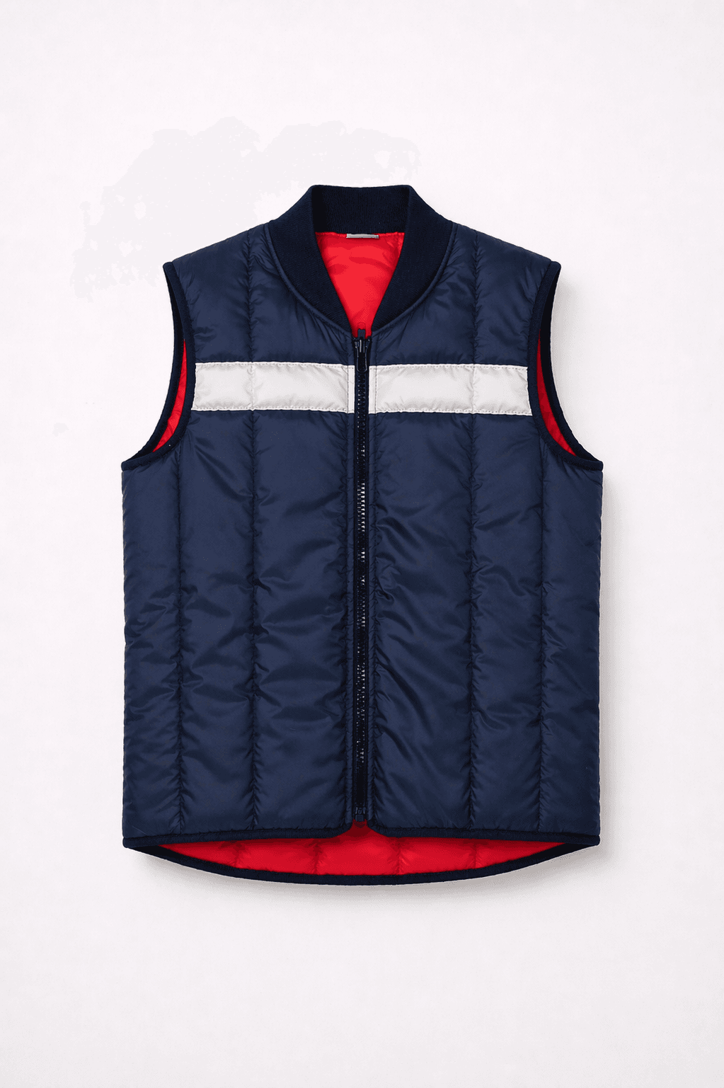 Reflektörlü Şişme İş Yeleği Kırmızı Lacivert Kolsuz Fermuarlı Personel Yeleği