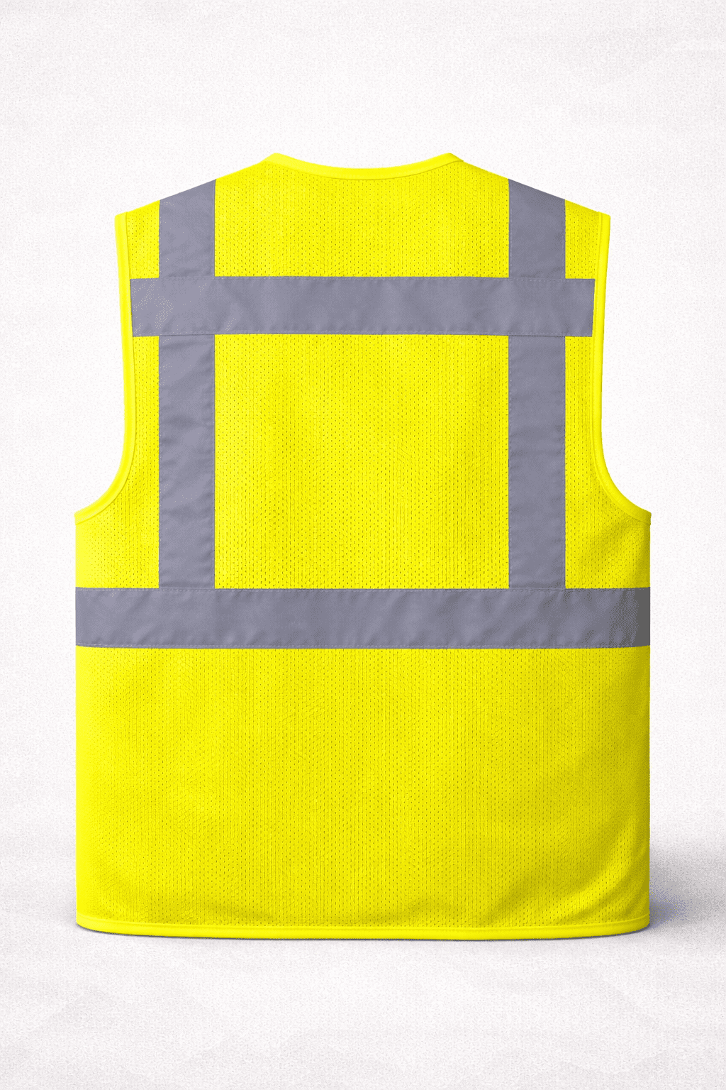 Sarı Fileli Reflektif İş Yeleği – Çok Cepli Nefes Alabilir Hi-Vis Saha Modeli